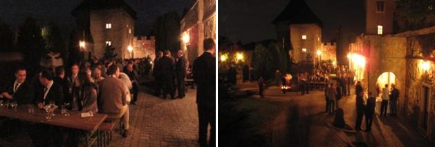 Pohľad z veže zámku na dolné nádvorie, kde sme mali večerný program