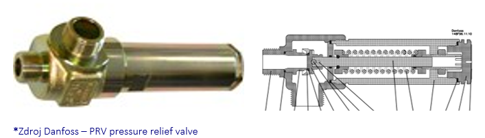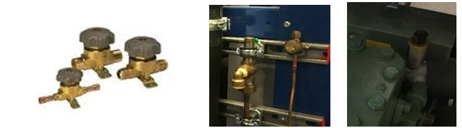 Servisné ručne ovládané ventily na servisné práce. Schrader ventily sa nesmú používať. Mohli by sa zablokovať suchým ľadom. Poistné ventily sú na každej uzatvárateľnej časti chladiaceho okruhu, vrátane kompresora (obrázok napravo)