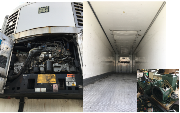 Prepravné chladenie s vlastným dieselovým motorom paralelne s elektromotorom. Vnútorná jednotka vyfukuje ochladený vzduch medzi stropom a plachtou tak, aby sa dopravil až na koniec skrine Napravo generálne opravy kompresorov.