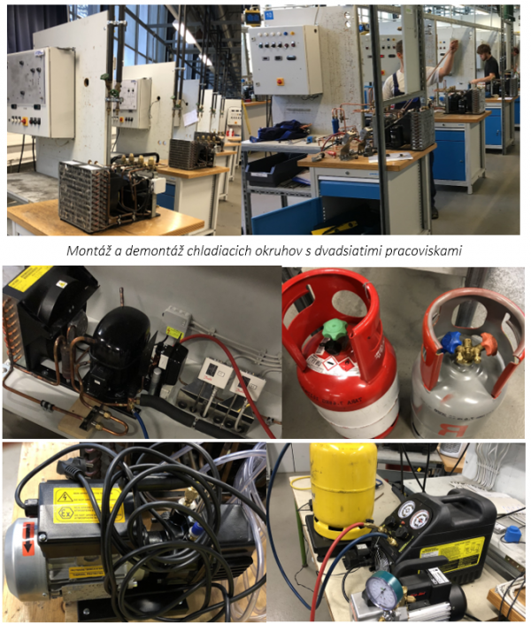 Dielne sú rozdelené na mechanickú, elektrickú, vodné systémy, montáž a demontáž chladiaceho okruhu, merania chladiaceho okruhu a montáž chladiaceho okruhu do chladiacich boxov vrátane elektrického zapojenia. Pripravujú pracoviská na chladivo CO2, čisté uhľovodíky a amoniak. V priestoroch sú inštalované aj historické chladiace okruhy, kde je možné vidieť vývoj technických riešení. Celkom majú 600 študentov vo všetkých ročníkoch. Z nich 70 je na majstrovskej skúške potrebnej pre živnosť. Škola je zapojená do európskych aktivít s novými chladivami v rámci Real alternatives.