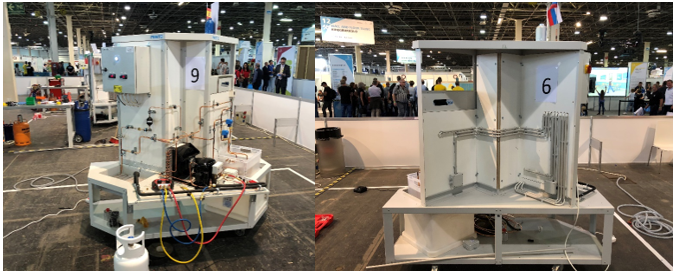 Naľavo víťazné riešenie španielskeho súťažiaceho nebolo úplne perfektné. Na ľadovej ploche v kútoch bola aj voda. V celkovom bodovacom systéme však obstál najlepšie. Napravo je vidieť dôraz na vedenie, upevnenie elektrického káblovania, na ktorom sa hodnotila precíznosť, horizontálnosť, vertikálnosť, bez konfliktnosť s potrubiami. Pri kontrole pred uvedením do prevádzky sa hodnotilo uzemnenie, skraty.