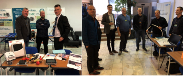 Vľavo pri výstavnom stolíku firmy Carel, za ktorou bol najväčší stánok výstavy spoločnosti Embraco Slovakia. Napravo diskusia pri výstavnom stolíku firmy Hisense- PT